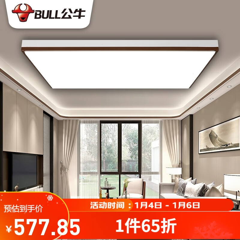 公牛(BULL)吸顶灯 朗晨长方形卧室灯客厅灯全屋灯北欧风简约现代三段调光调色150W价格:889.00元!