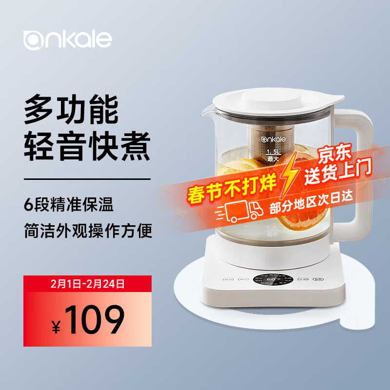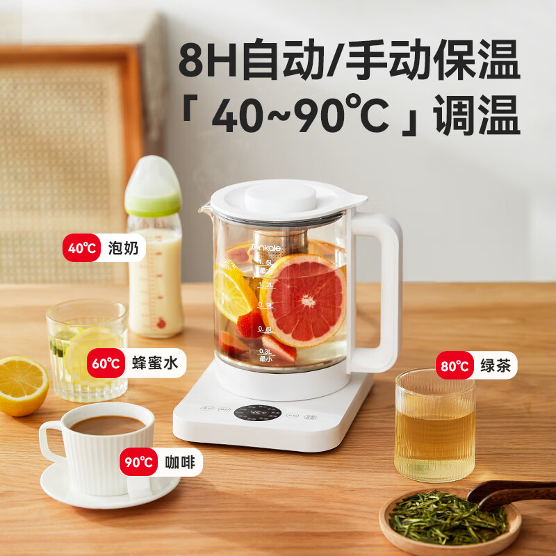 ankale养生壶 煮茶壶 烧水壶保温一体全自动恒温电热水壶 办公室煮水壶1.5升 纯白陶瓷油底 1.5L 「配滤网&蒸屉」价格:109.00元!