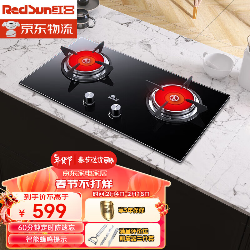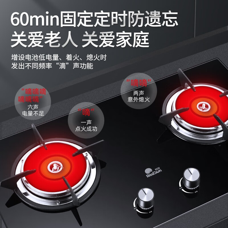 红日(RedSun)红外线燃气灶双灶家用灶具节能猛火防爆面板嵌入式灶JZT-EM208B(天然气)价格:599.00元!