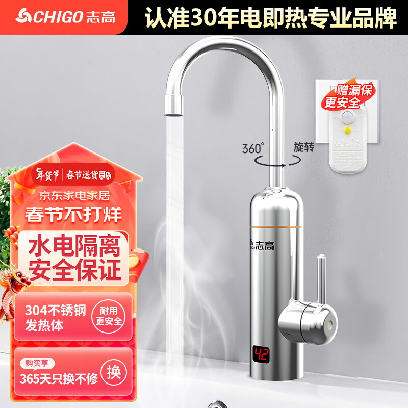 志高(CHIGO)电热水龙头 快速加热厨房冷热小厨宝 即热式水龙头电热水器 下进水 银色送漏保ZG-WMA26价格:118.00元!