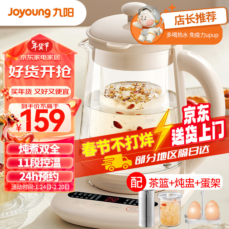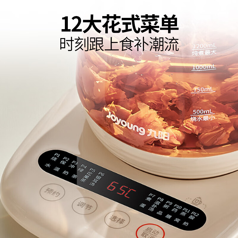 九阳(Joyoung)养生壶玻璃花茶壶 1.5L 12大功能11档控温 电水壶热水壶烧水壶K15D-WY123(茶炖)价格:159.00元!