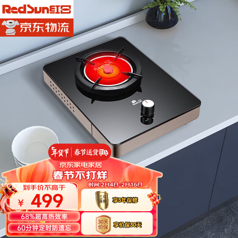 红日(RedSun)红外线燃气灶家用单灶 液化气 高端台式68%热效率 定时防干烧 JZY-ED009B(液化气)价格:499.00元!