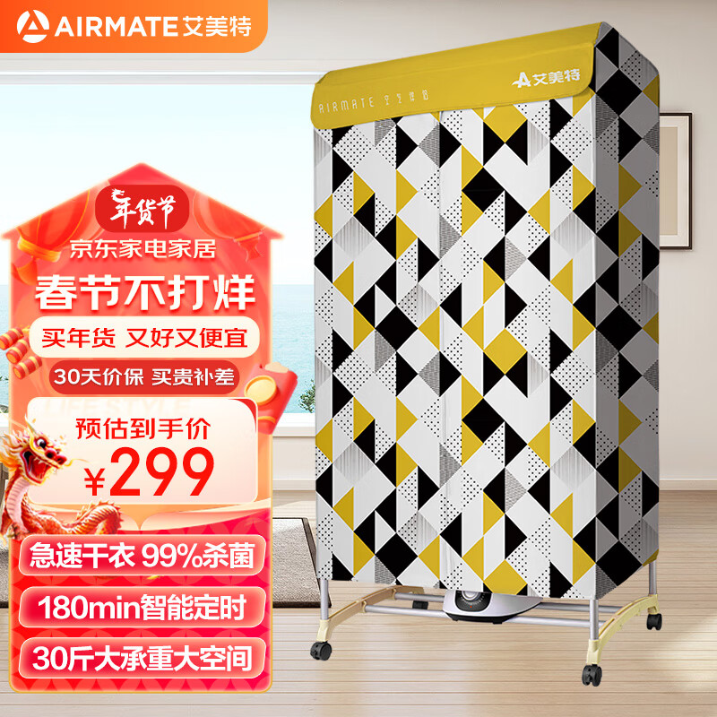 艾美特(AIRMATE)烘干机家用干衣机双层烘干衣柜 双层婴儿衣物消毒机定时烘干衣柜烘干器 HGY1023P-W价格:332.00元!