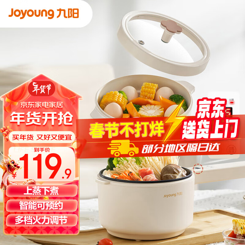 九阳(Joyoung)2L双层电煮锅电炒锅 电热锅 一体宿舍小电锅煮面锅 电炒锅 多功能小火锅年货送长辈送老人G186价格:119.90元!