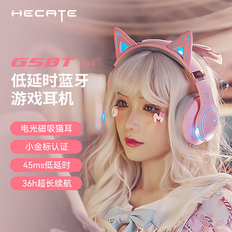 漫步者(EDIFIER)HECATE G5BT萌猫版 蓝牙游戏耳机头戴式发光猫耳【低延时】吃鸡手游耳麦网红女神直播铂晶粉价格:499.00元!