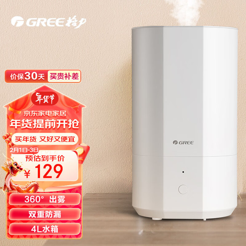 格力(GREE)加湿器 4升 空气加湿桌面/卧室/办公室上加水 母婴可用 双重防漏水加湿器(SC-40x70a)价格:129.00元!
