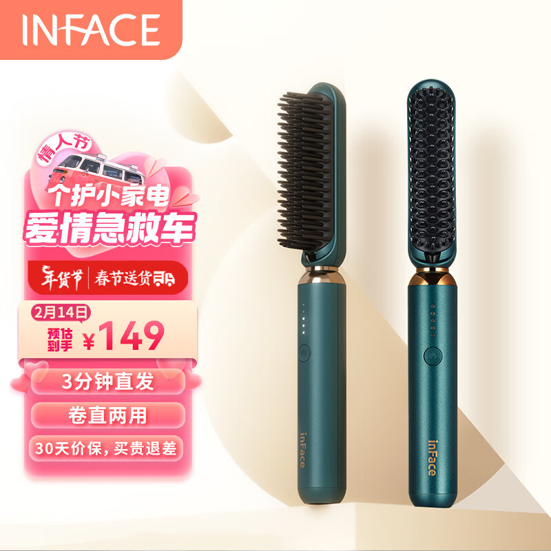 inFace负离子直发梳卷发棒直板夹蓬松夹板棒卷发梳电梳子短发打理卷直两用干湿生日礼物女送老婆送女友价格:149.00元!