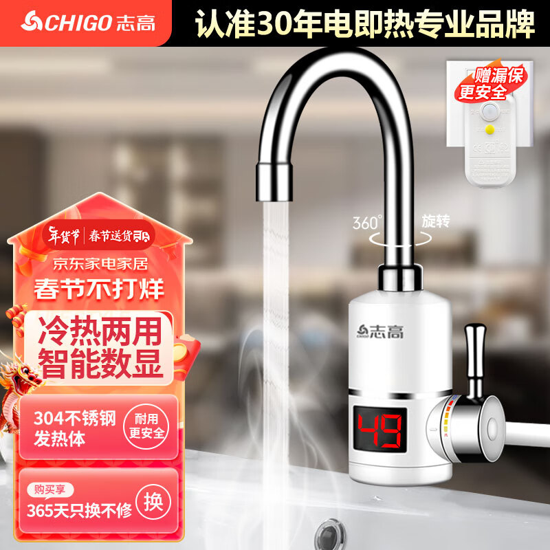 志高(CHIGO)电热水龙头 快热厨房小厨宝 加热热水宝加热器即热式水龙头电热水器速热水龙头侧进水ZG-ZS811-H5C价格:118.00元!
