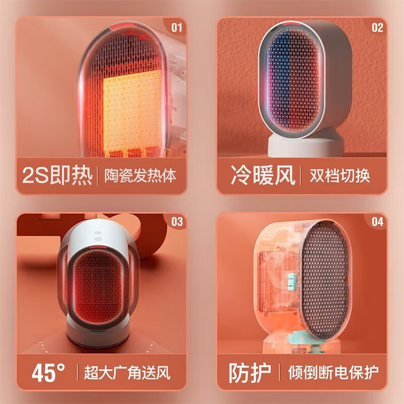 斗禾 取暖器 暖风机 家用办公室 小太阳冷暖两用桌面风扇节能省电快热炉小型迷你桌面热风机大面积加热 白色价格:99.00元!
