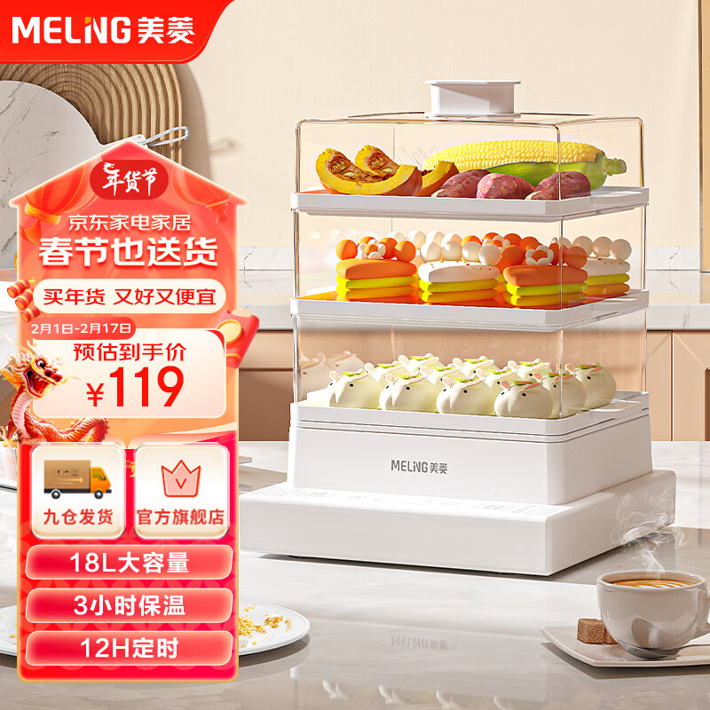 美菱(MeiLing)电蒸锅蒸锅家用蒸包子锅多功能电蒸箱分体式蒸汽锅蒸蛋器18L大容量MT-DZ1004A价格:119.00元!