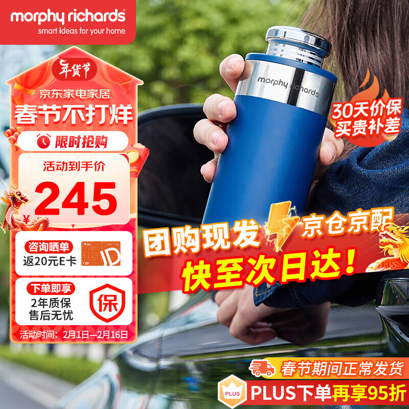 摩飞电器(Morphyrichards)取暖器便携式保温杯暖手宝 圣诞生日送礼物送女友女生送老师迷你usb充电时尚水杯 MR6000轻奢蓝价格:272.00元!
