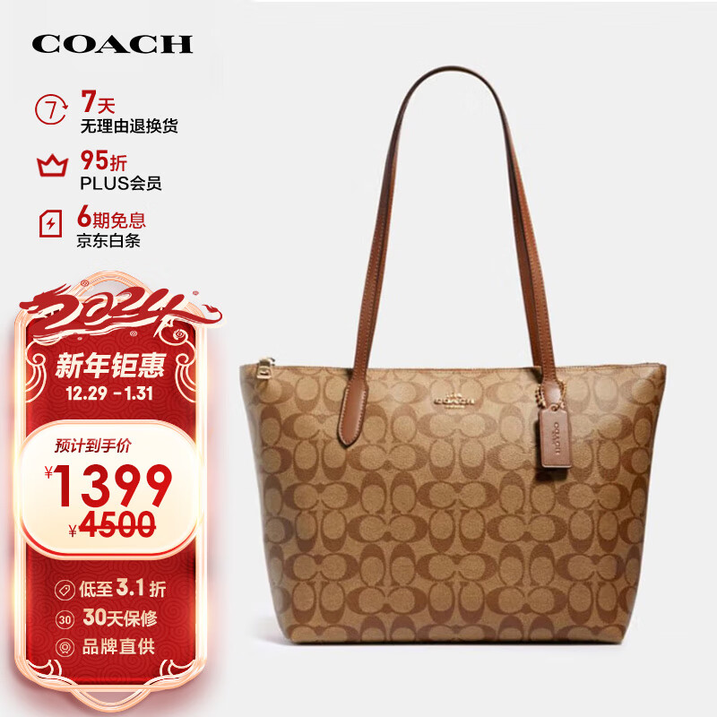 蔻驰(COACH)女士大号单肩手提包托特包卡其色/棕色4455IME74价格:1399.00元!