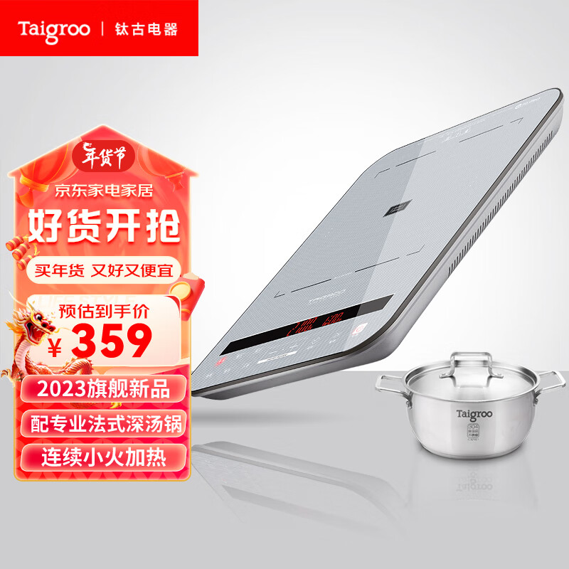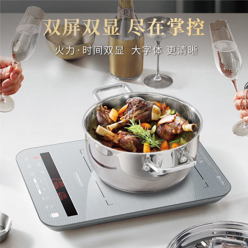 Taigroo钛古电磁炉年度畅销家用双屏显示火锅智能多功能电磁灶星云灰电磁炉汤锅套装价格:359.00元!