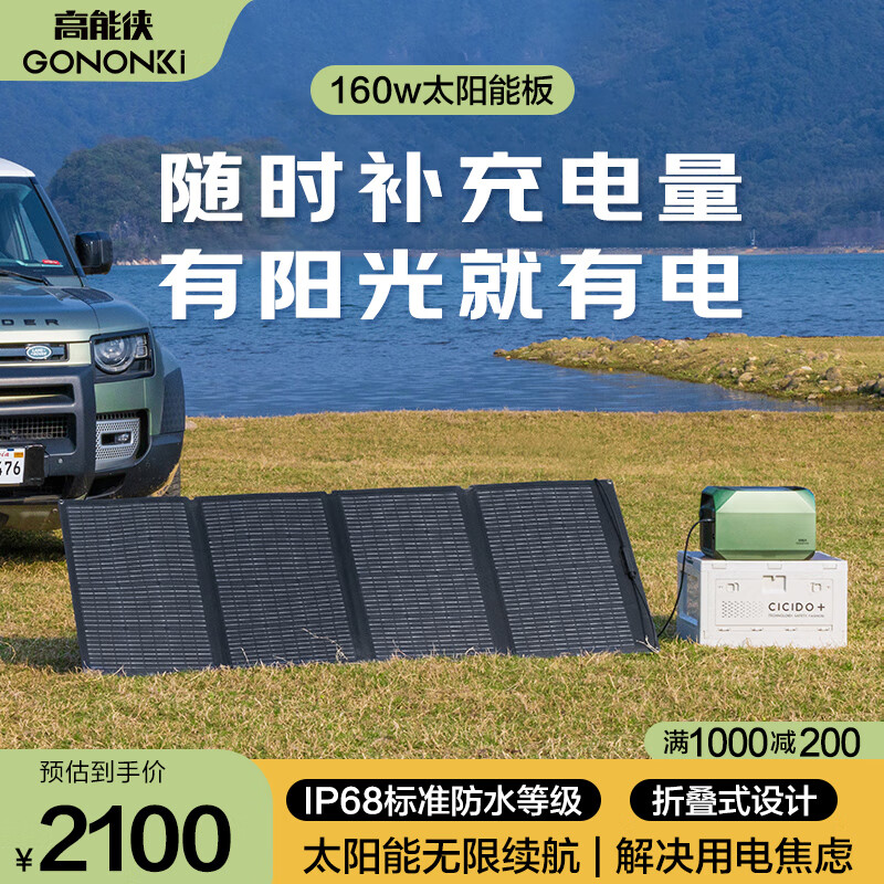 高能侠车载折叠便携户外露营家用充电防水发电无限续航太阳能板160W价格:2300.00元!