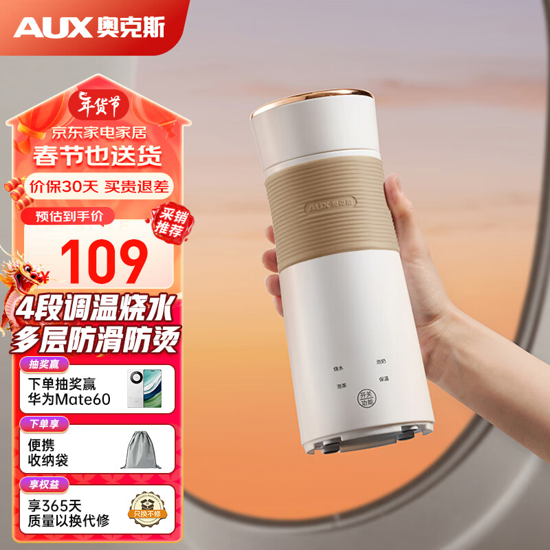 奥克斯(AUX)便携式家用旅行电热水壶随行冲奶泡茶办公室养生杯恒温热水壶电水杯HX-DR21价格:109.00元!