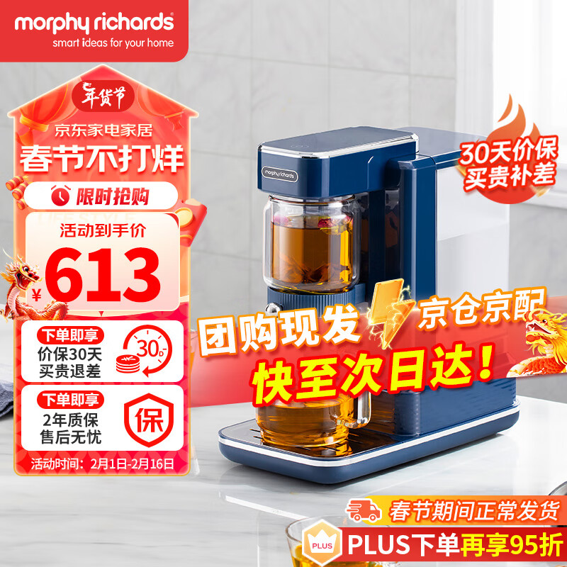 摩飞电器(Morphyrichards)即热式茶饮机 泡茶机 煮茶器 家用办公室养生壶 多功能烧水 一体饮水机 MR6087 轻奢蓝价格:613.00元!