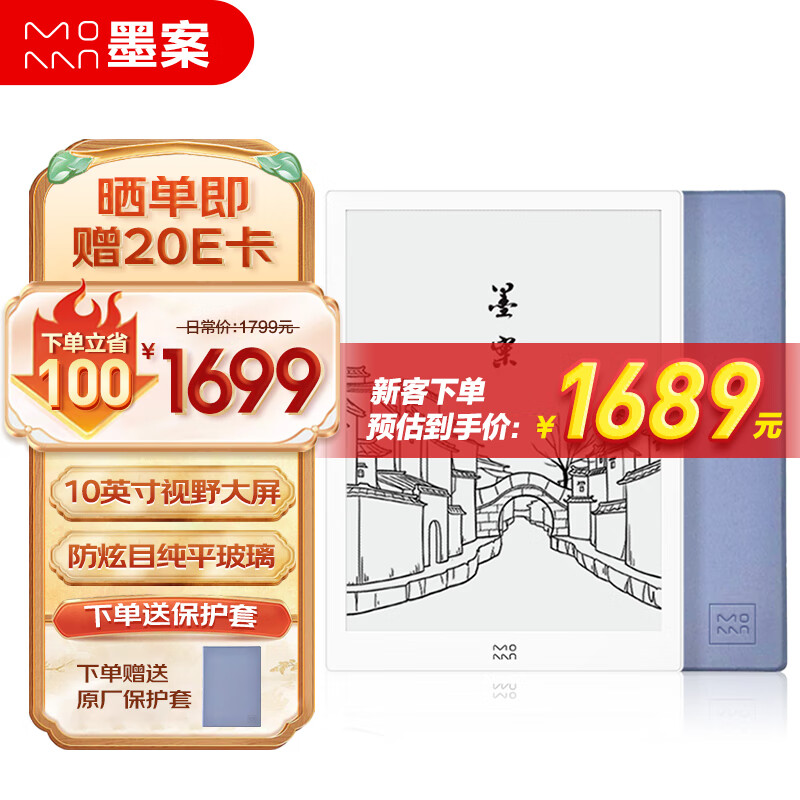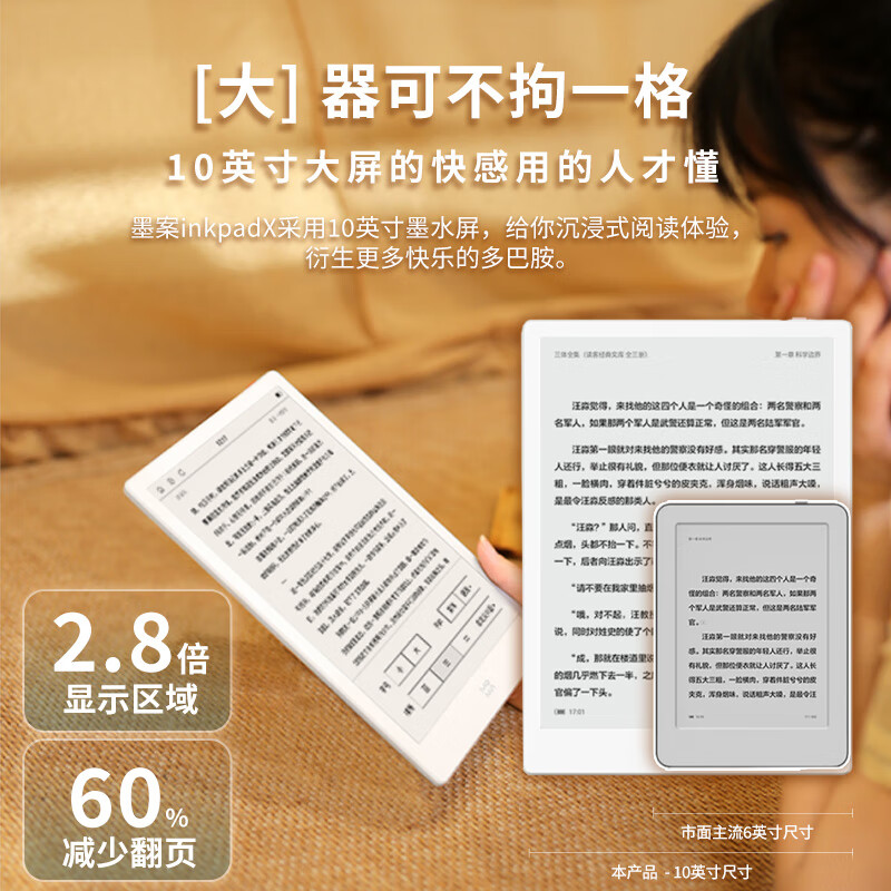 墨案 inkPad X阅读器 智能电子书 水墨大屏10英寸 电纸书套装 64G 安卓 硬派X 月落白价格:1799.00元!