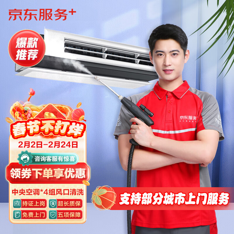 【京东服务+】中央空调4组风口全拆洗 家电清洗上门服务家政保洁价格:439.00元!