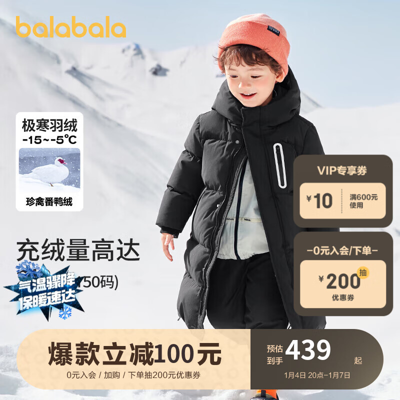 巴拉巴拉儿童羽绒服男童女童外套宝宝冬装2023童装中长款洋气价格:539.00元!