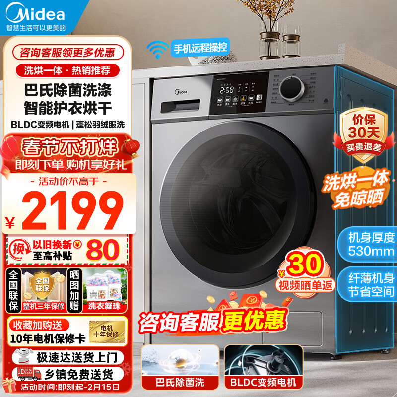 美的(Midea)滚筒洗衣机洗烘一体 除菌除螨筒自洁 手机智控变频轻音MD100VC133WY价格:2199.00元!