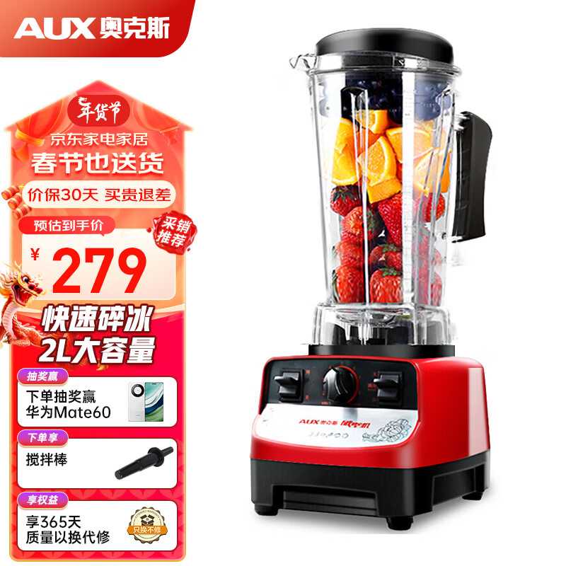 奥克斯(AUX)破壁机 大容量碎冰机商用榨汁机多功能料理机家用沙冰机豆浆机搅拌果汁机HX-PB1058价格:309.00元!
