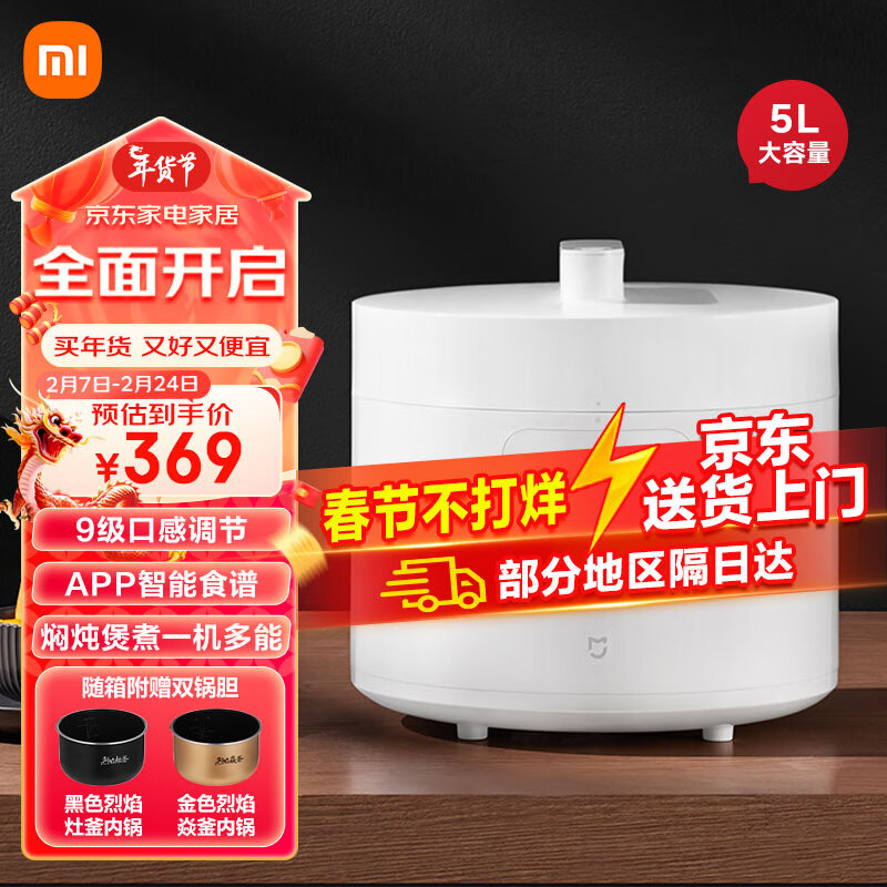米家 小米智能电锅5L 高压锅双胆 24H预约 APP智能食谱 支持开盖煮价格:369.00元!