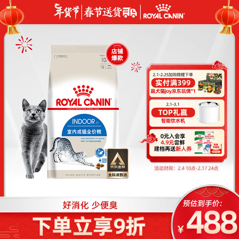 皇家猫粮 室内成猫粮 I27 通用粮 12月以上 10KG价格:637.00元!