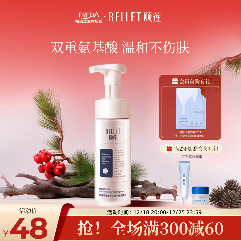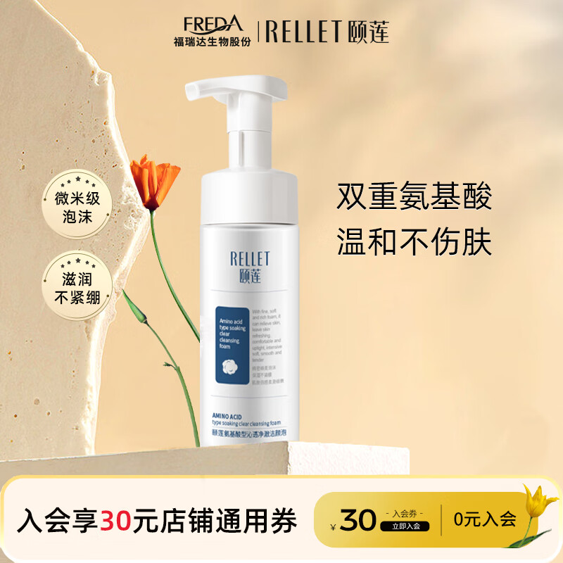 颐莲(RELLET)氨基酸洁颜泡 洗面奶洁面慕斯清洁敏肌可用保湿温和150ml价格:48.00元!