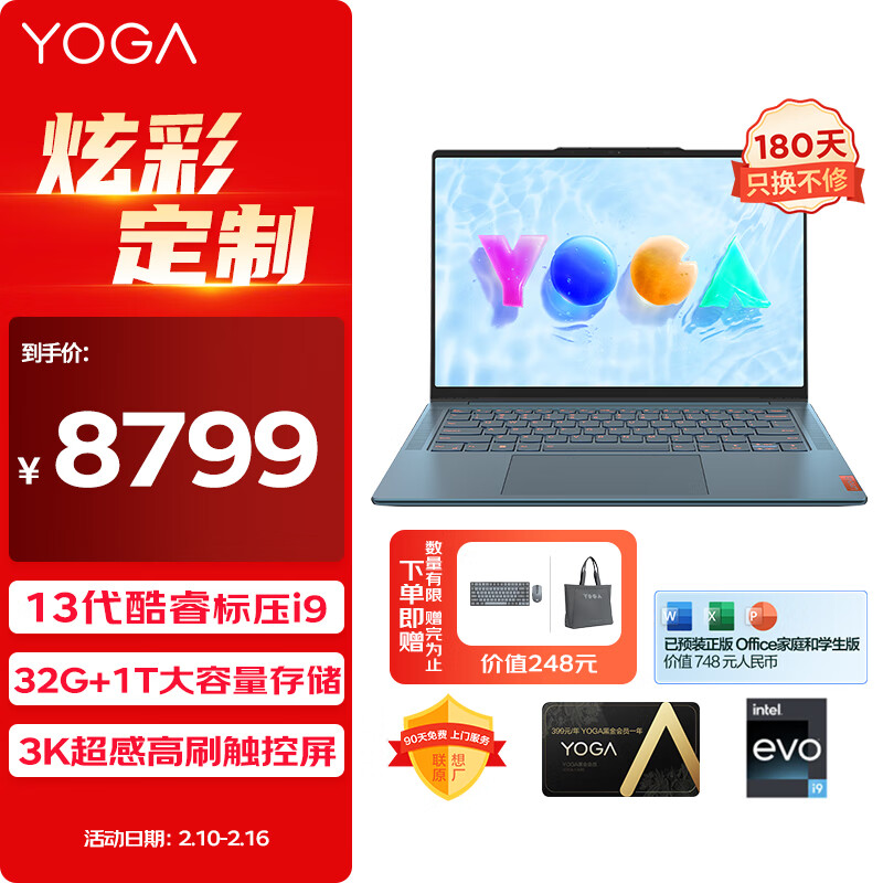 联想笔记本电脑YOGAPro14s轻薄本 13代酷睿i9 14.5英寸商务本(i9-13900H 32G 1T 3K高刷触控屏)办公价格:8799.00元!