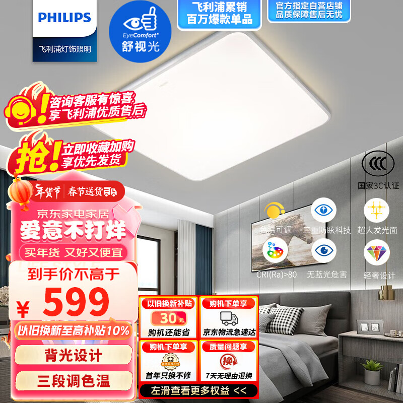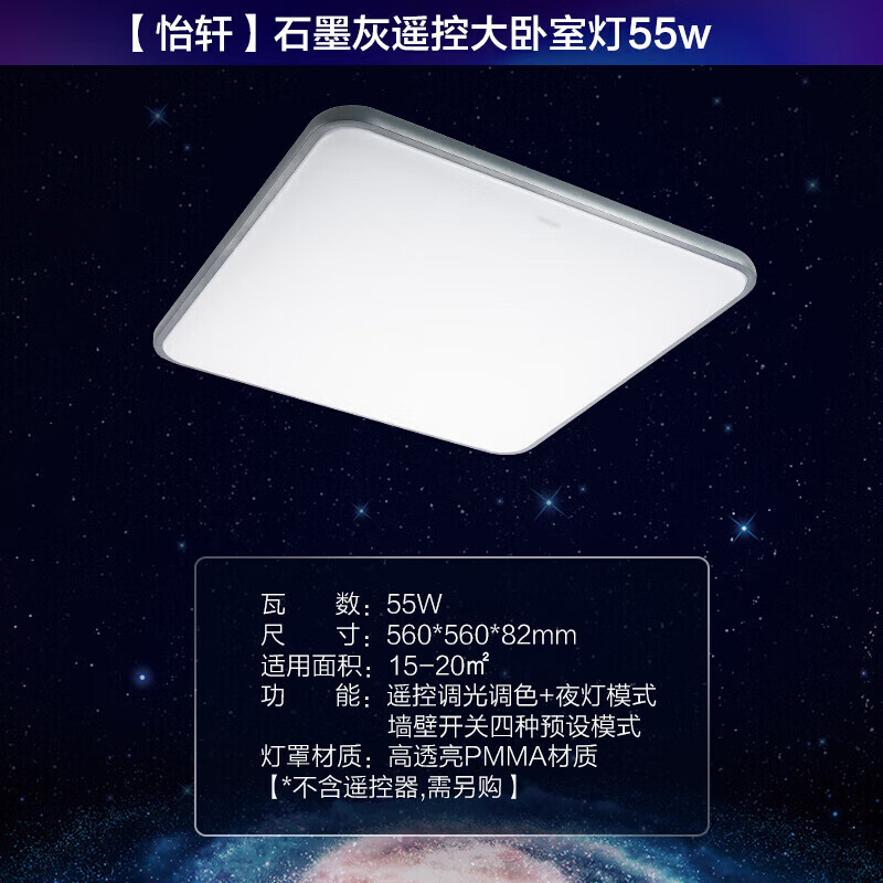 飞利浦(PHILIPS)led吸顶灯卧室灯客厅灯书房餐厅超薄灯饰灯具遥控调光55W怡轩价格:856.00元!