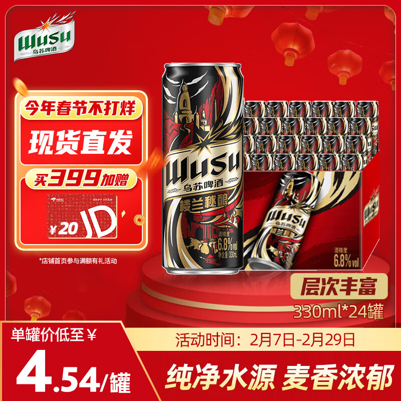 乌苏啤酒(wusu)楼兰秘酿330ml*24罐/箱 整箱装价格:159.00元!