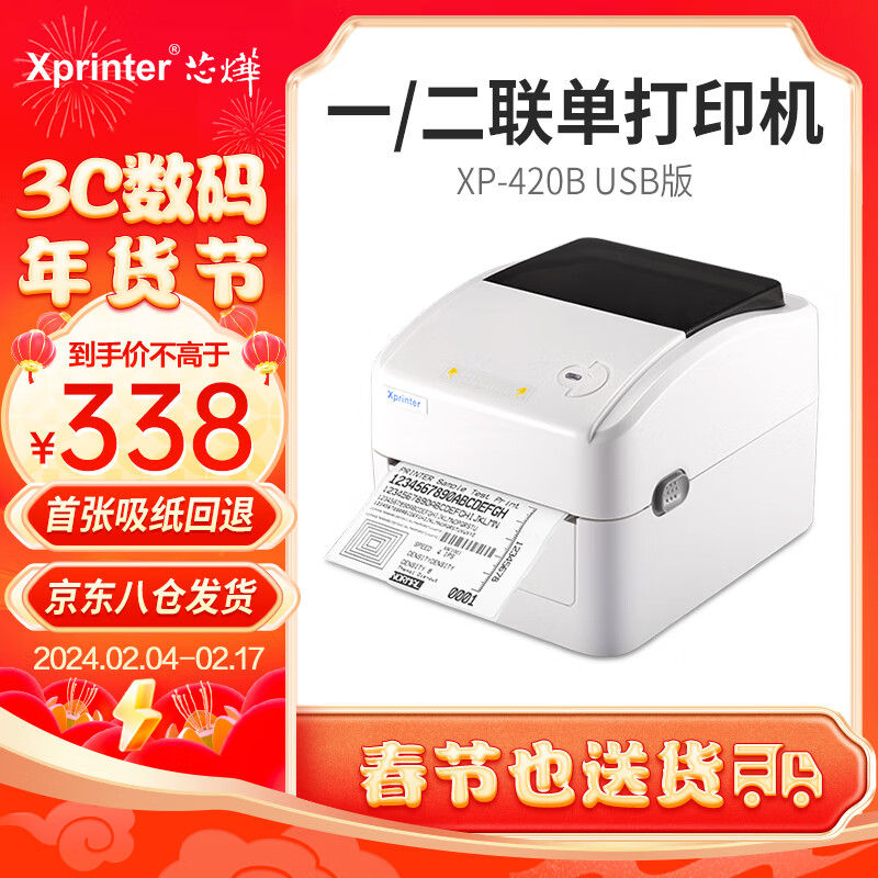 芯烨(XINYE)XP-420B 快递单电子面单打印机 104mm热敏标签不干胶条码打印 仓储物流二维码一、二联单打印机价格:358.00元!
