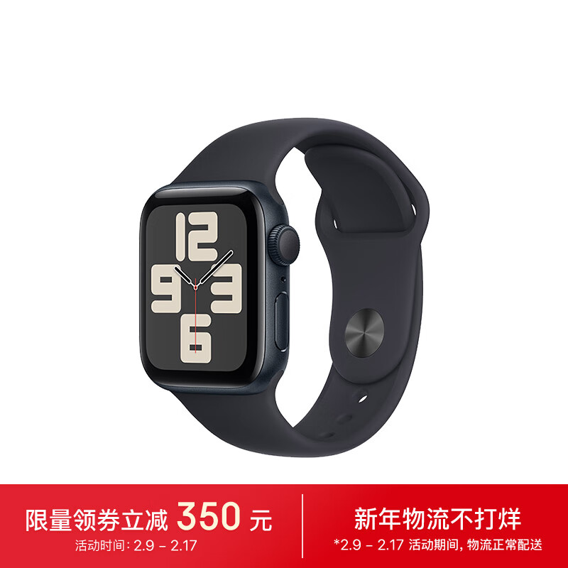 Apple/苹果 Watch SE 2023款智能手表GPS款40毫米午夜色铝金属表壳午夜色运动型表带S/M MR9X3CH/A价格:1999.00元!