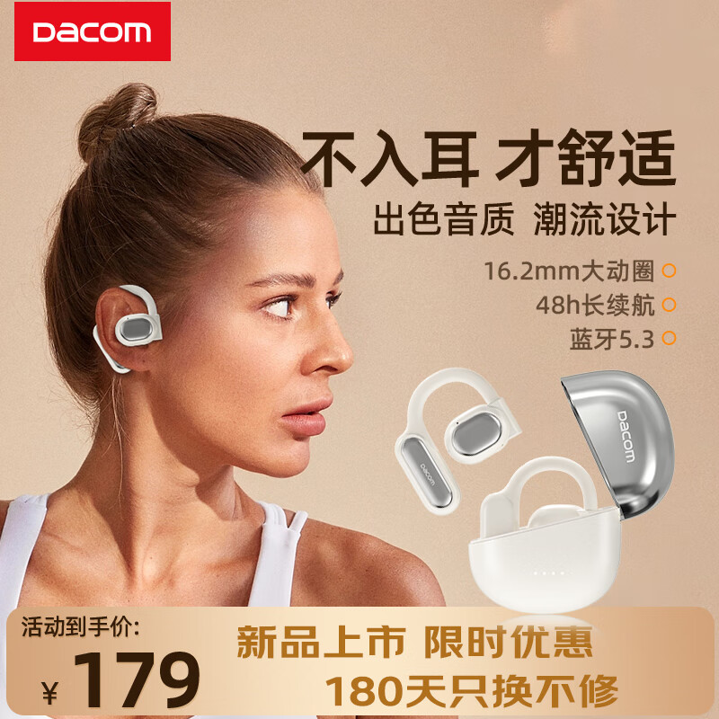 dacomFreeBeats运动蓝牙耳机不入耳开放式耳机跑步无线挂耳式气骨传导概念适用苹果华为小米 白色价格:219.00元!