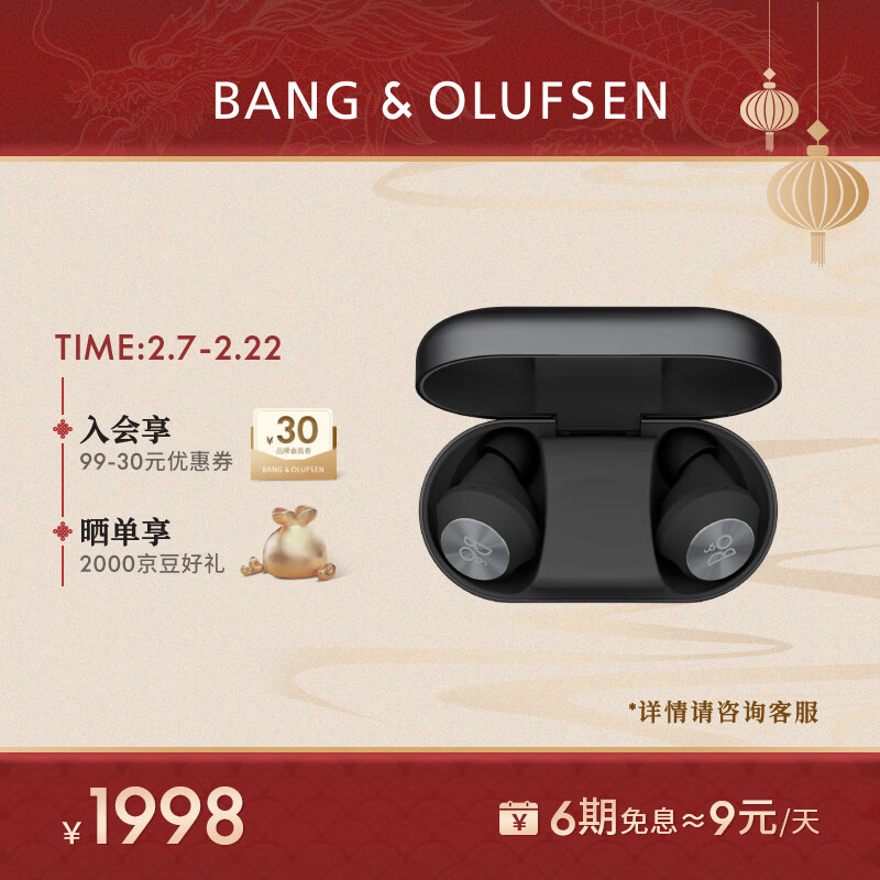 B&O Beoplay EQ主动降噪真无线蓝牙耳机 bo无线充电耳机 入耳式运动立体声 Black炭黑色 节日礼物价格:1998.00元!