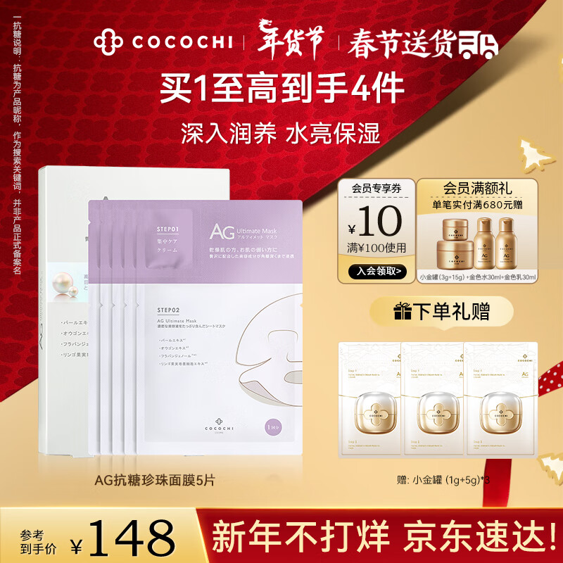 COCOCHICOSME蔻蔻琪AG抗糖面膜白色珍珠面膜补水保湿面膜生日礼物走心价格:148.00元!